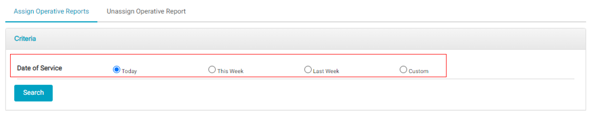 • Tap the Search button. All unassigned operative reports for the selected date range will display.