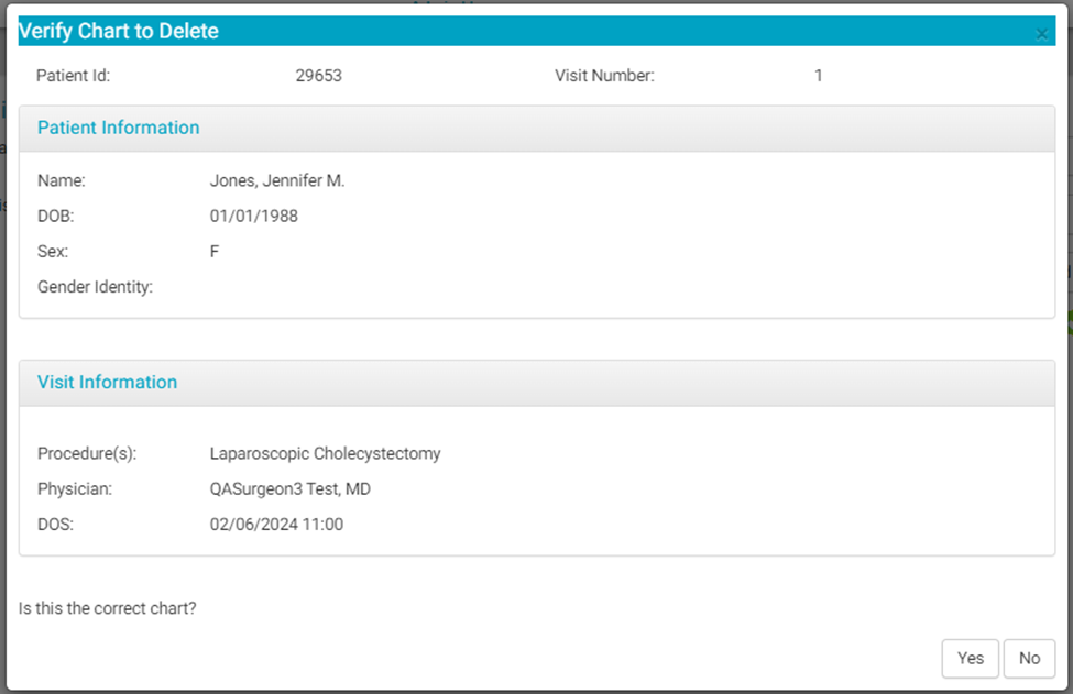 - Enter the Patient ID and Visit Number for the chart to be deleted.